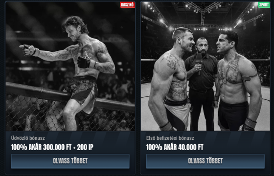 Új játékosok négy üdvözlő ajánlat közül választhatnak: kaszinó bónusz (100% akár 750 € + 200 FS), sport bónusz (100% akár 100 €), kripto kaszinó bónusz (200% akár 3 000 USDT) vagy kripto sport bónusz (100% akár 200 USDT).